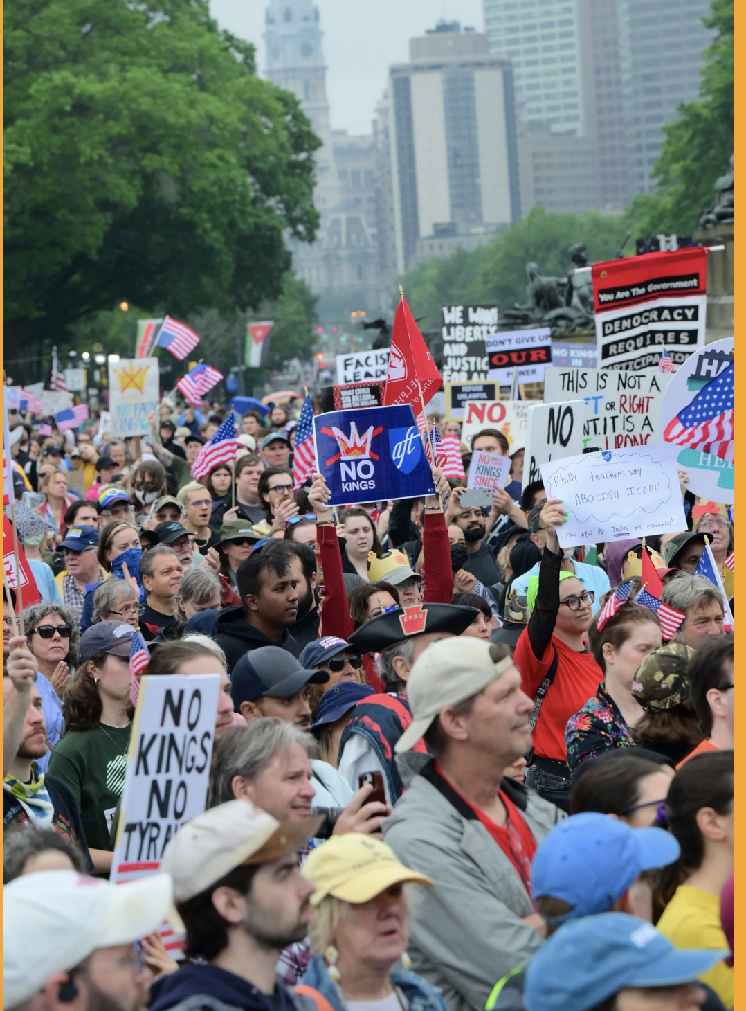 D’énormes manifestations au cri de hands off (bas les pattes) ont eu lieu dans tous les Etats du pays pour protester contre les abus de pouvoir du gouvernement « Les gens commencent à souffrir. Ils perdent leur job, leur argent, leur retraite ». En octobre encore, 2600 rassemblements du mouvement No Kings à travers les Etats-Unis ont réuni sept millions de personnes pour protester contre les dérives de Donald Trump. Des juges, des intellectuels, des politiques, des religieux, des artistes (comme les Guerilla Girls*), s’opposent à cette politique; des scientifiques ont créé le collectif ‘Stand Up For Science‘ pour défendre les libertés académiques contre la censure dans les travaux scientifiques, les licenciements massifs appliqués aux science humaines et sociales et l’interruption des collaborations internationales .Dans les Médias, la série satirique South Park cartonne, tournant en ridicule Trump et la sphère Maga.