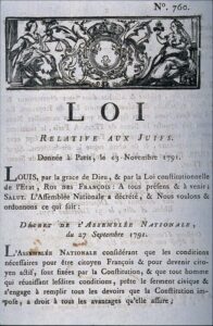 Finalement, presque à la sauvette, aux derniers jours avant la dissolution de la Constituante, le 27 septembre 1791 le député Duport propose « que les Juifs deviennent des citoyens actifs ». L’assemblée accepte par une loi immédiate qui accorde enfin! l’égalité civique à tous les Juifs de France, préalable indispensable à l’intégration à la Nation.