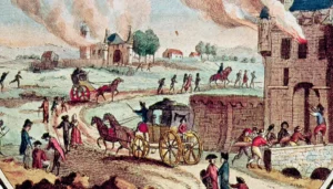 la Grande Peur de 1789 : en raison de mauvaises récoltes en 1788 et de l’augmentation des prix des grains, des rumeurs et des paniques se répandent à propos des seigneurs, qui aboutissent à des formations de milices paysannes attaquant leurs châteaux dans les provinces. Le mouvement s’étend tout l’été de 1789 et provoque de nouvelles exactions antijuives.
